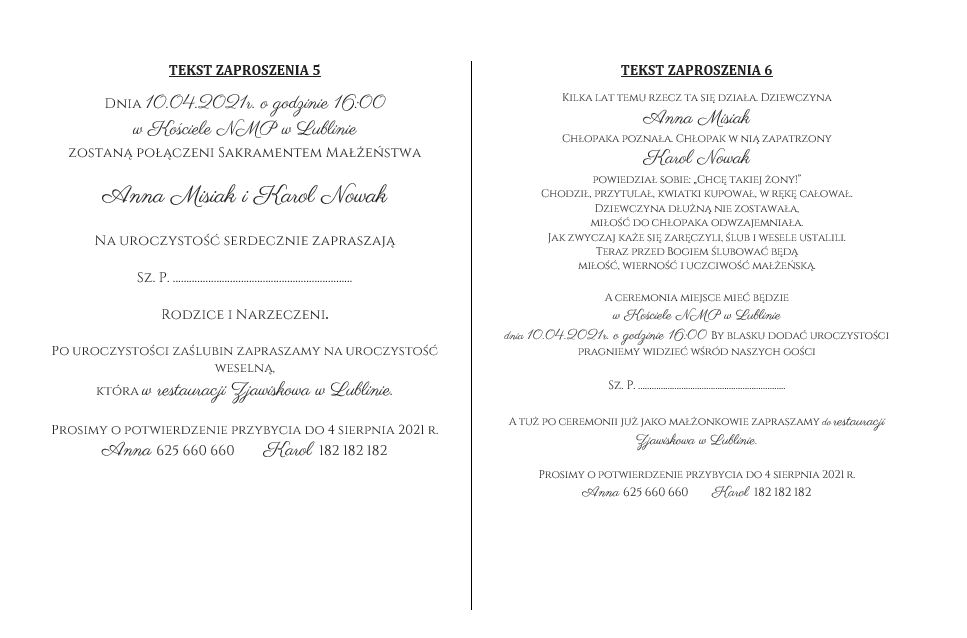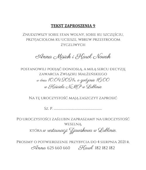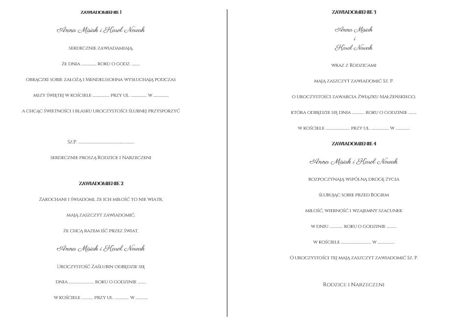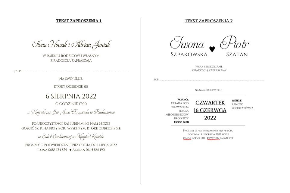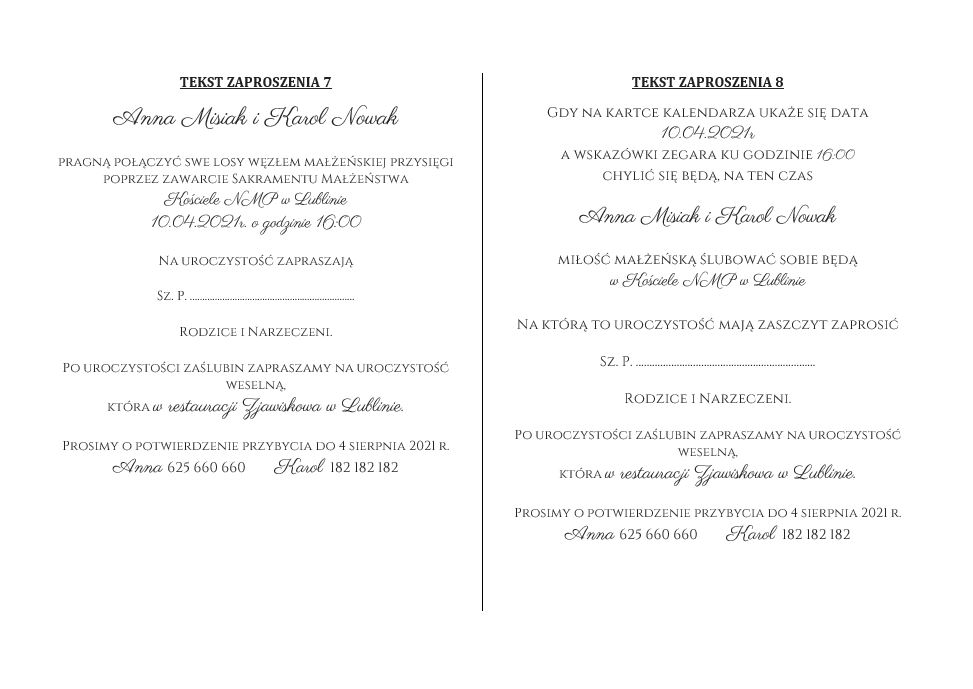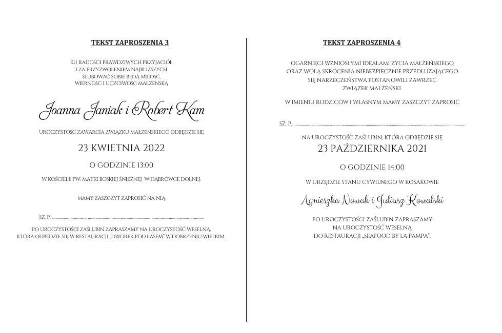 - modyfikować tekst zaproszenia (usunąć wraz z Rodzicami itp.)