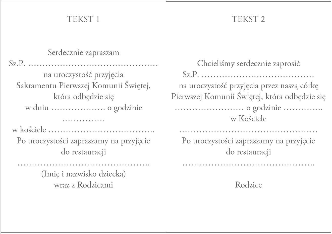 - modyfikować tekst zaproszenia – jeśli masz swój tekst odezwij się mailowo w celu wyceny.