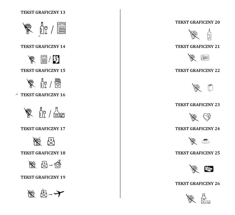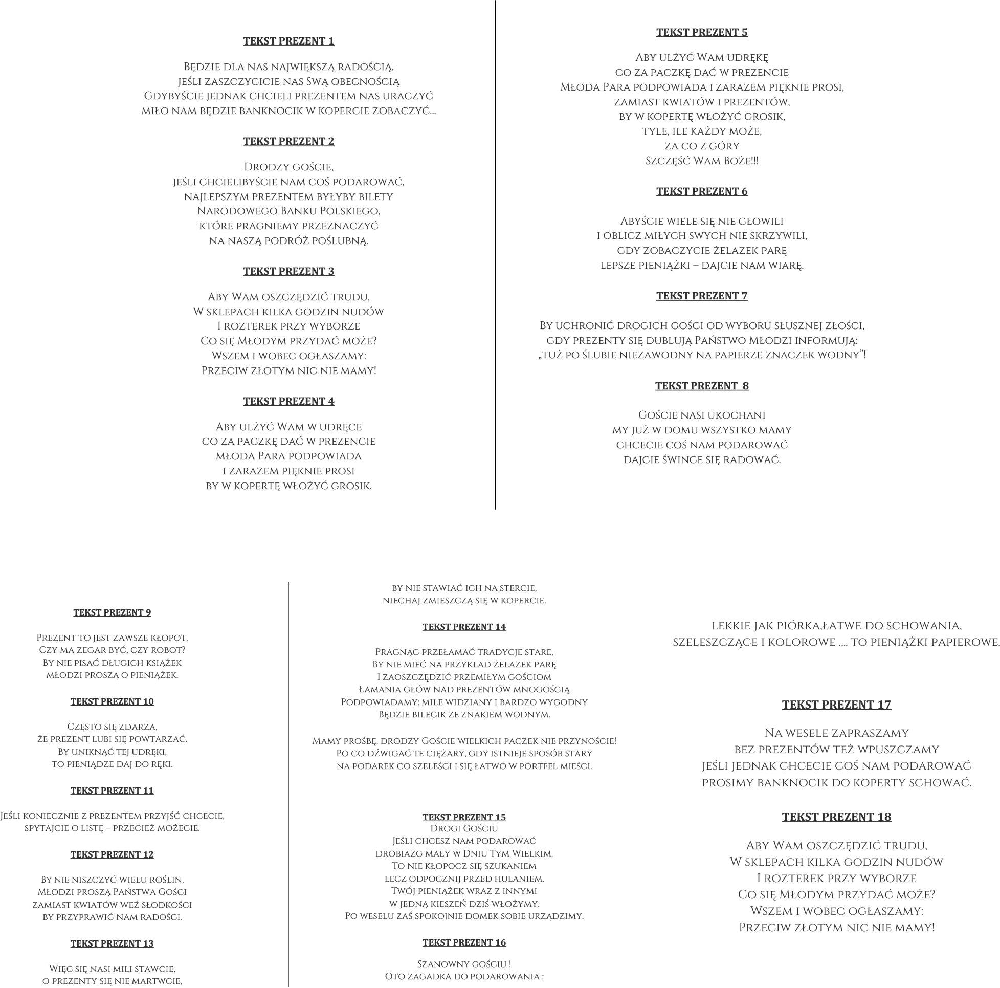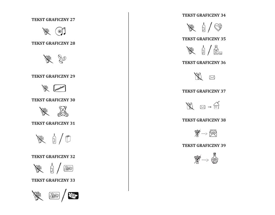 - wybór tekstu prezentowego