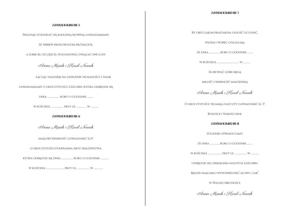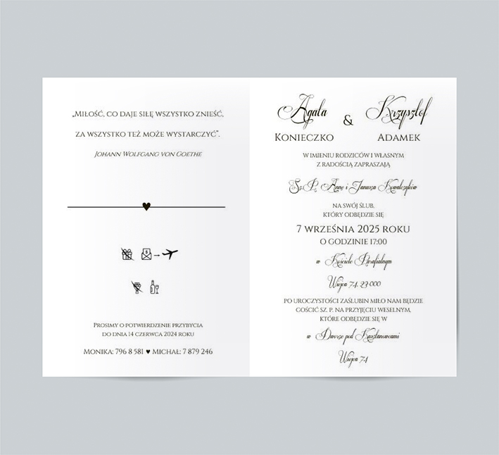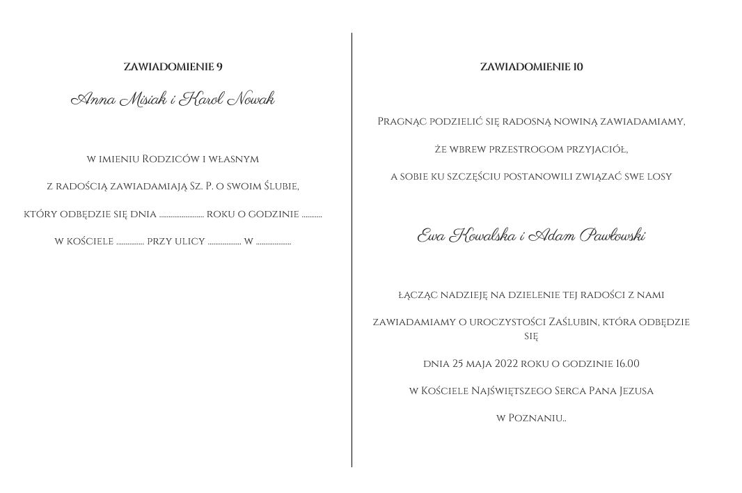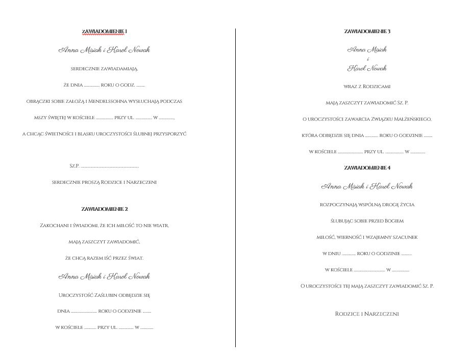 - modyfikować tekst zaproszenia (usunąć wraz z Rodzicami itp.) – jeśli masz swój tekst odezwij się mailowo w celu wyceny.
